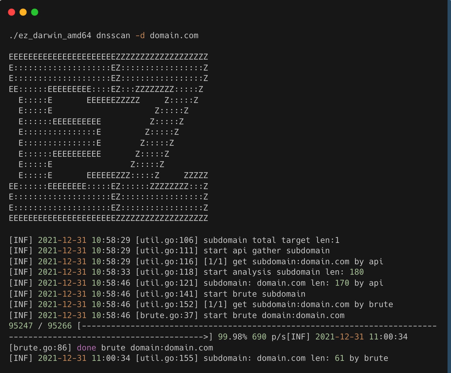 ez_darwin_amd64 dnsscan - Run a dns scan task,gather subdomain