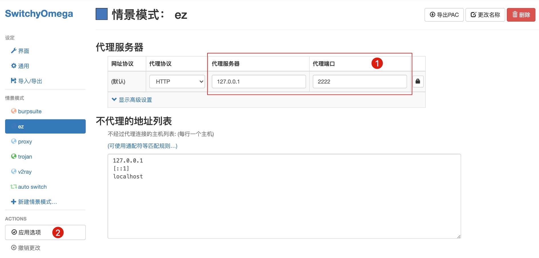 以浏览器为例,使用 SwitchyOmega 代理插件,配置代理为127.0.0.1:2222