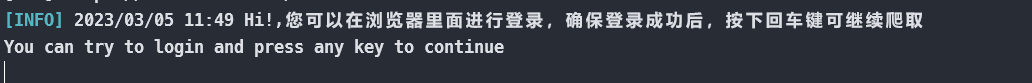 --wait-login 用于手动登录操作。此命令行会禁用掉无头模式,在执行爬取任务之前会弹出一个浏览器窗口,用于手动登录操作。确保登录成功之后,在命令行终端内按下回车键,即可继续爬取。还可以和分布式插件 HAWK-Remote 进行联动,在服务器环境下实现无头模式下进行远程可视化调用登录爬取。